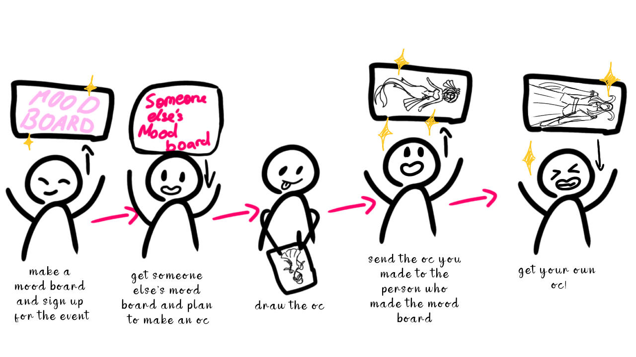 Happy Spring! To celebrate the coming of April, it’s time for a new-cross server art event!This is the OC Factory! This is a large art trade, organized by we mods Think of it as similar to Secret Santa, but with a twist; each person will submit a mood board for an oc, which the artist will then use to design a new character for them!Get More information and sign up on the discord server!